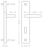 Nerezové kování s kvalitní povrchovou úpravou vhodné pro středně zátěžové prostory, například kanceláře, reprezentativní místnosti, prostory s běžným pohybem veřejnosti, byty, domácnosti. Materiál: nerez AISI 304.