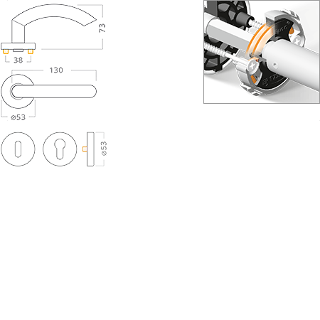 Nerezové kování s tichou ložiskovou rozetou. Další varianty BB, PZ, WC najdete v detailu.