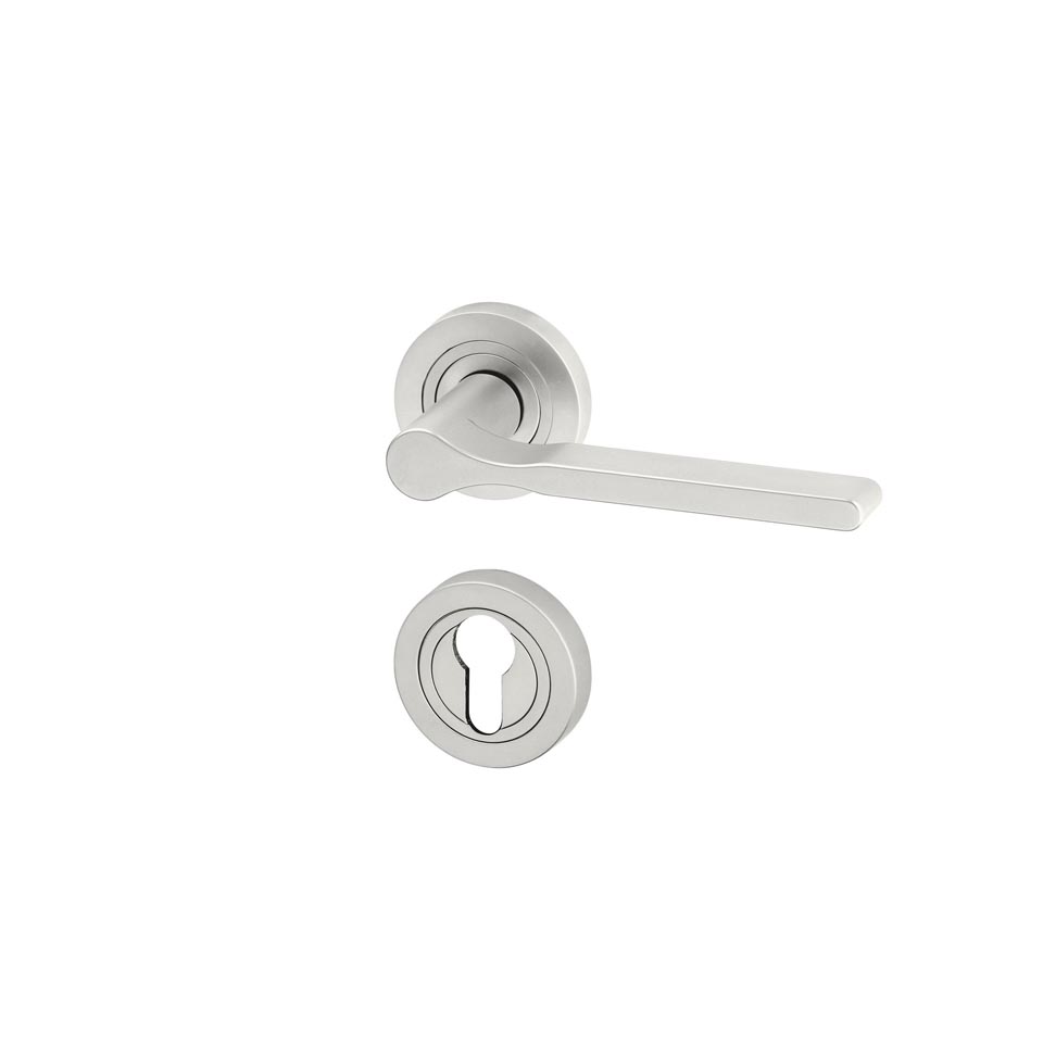 Nový design interiérového kování s jemným designem kliky na kulaté rozetě se vyznačuje kvalitní povrchovou úpravou, robustní litou konstrukcí rozety s trny proti pootočení. Povrch: matný nikl
