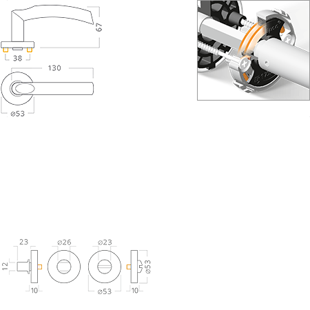 Nerezové kování s tichou ložiskovou rozetou. Další varianty BB, PZ, WC najdete v detailu.