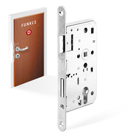 Zámek s panikovou funkcí E koule / klika a funkcí D klika / klika pro protipožární a kouřotěsné dveře a únikové cesty.