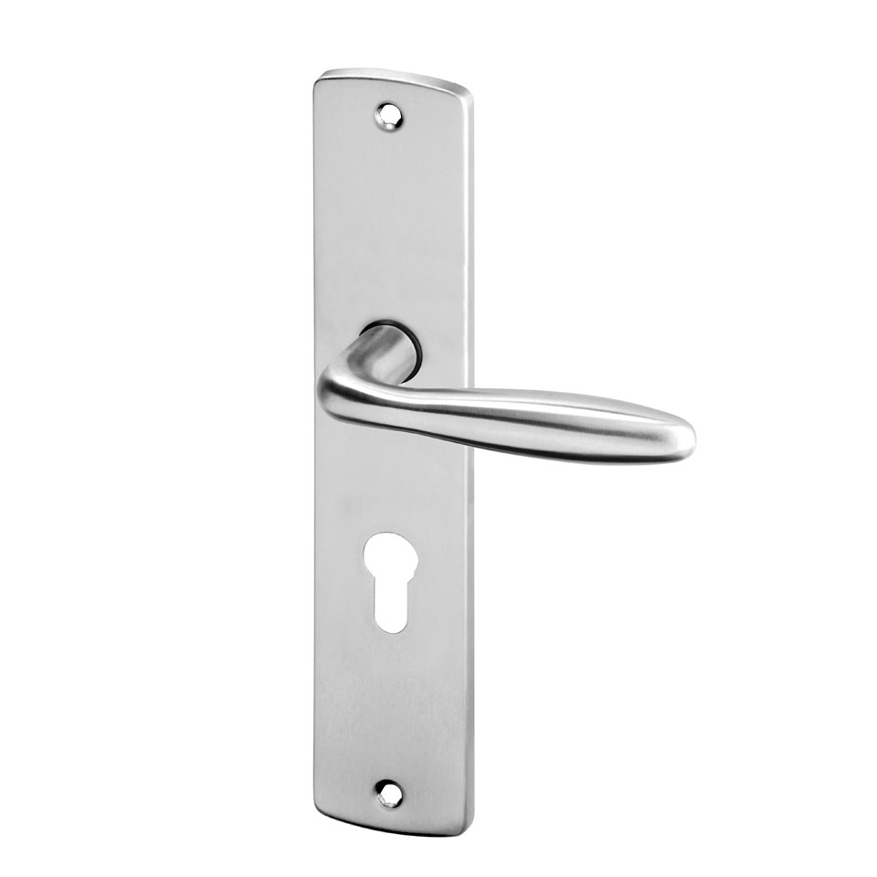 Bezpečnostní kování s klikou Tipa s ušlechtilým nerezovým povrchem.